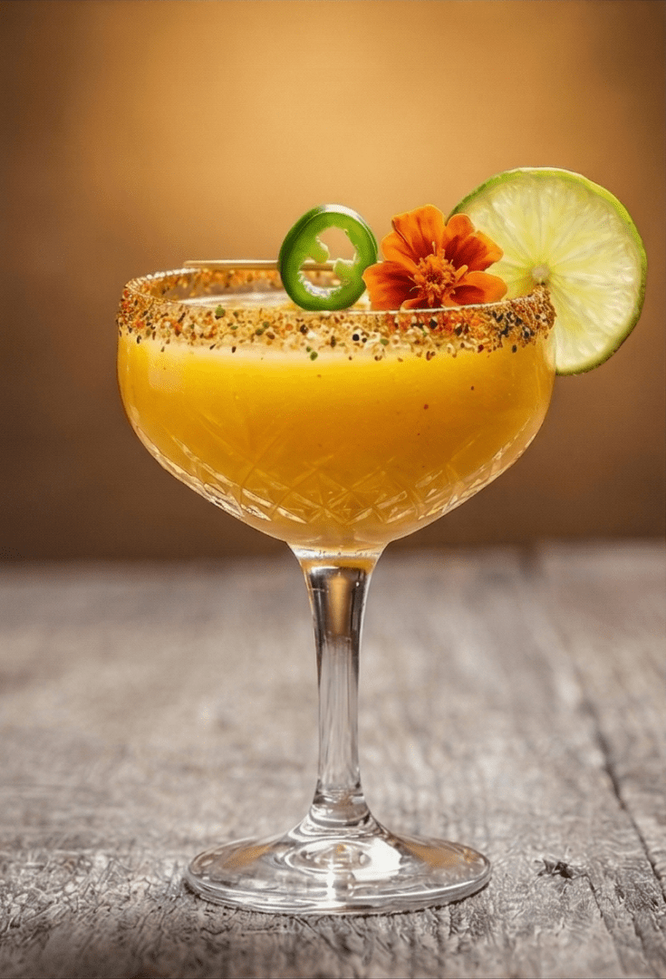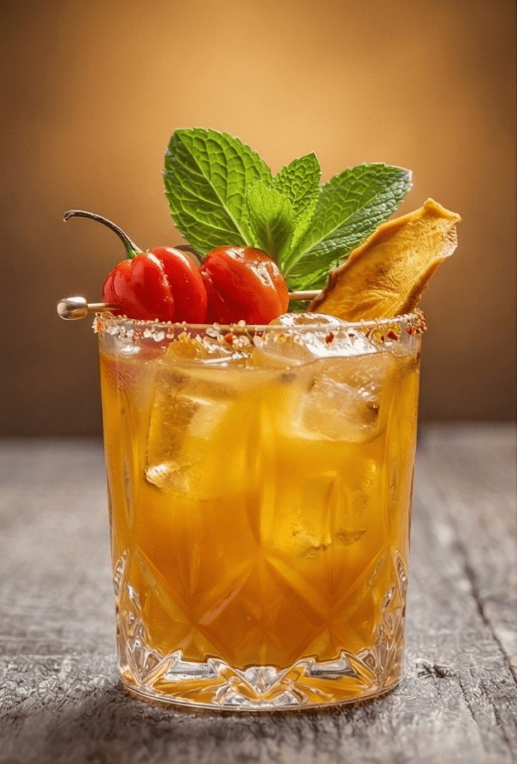 This bold cocktail brings a wave of ripe, tropical mango before easing into the fruity, floral heat of habanero. It builds a warmth that lingers beautifully without overwhelming the sweetness.